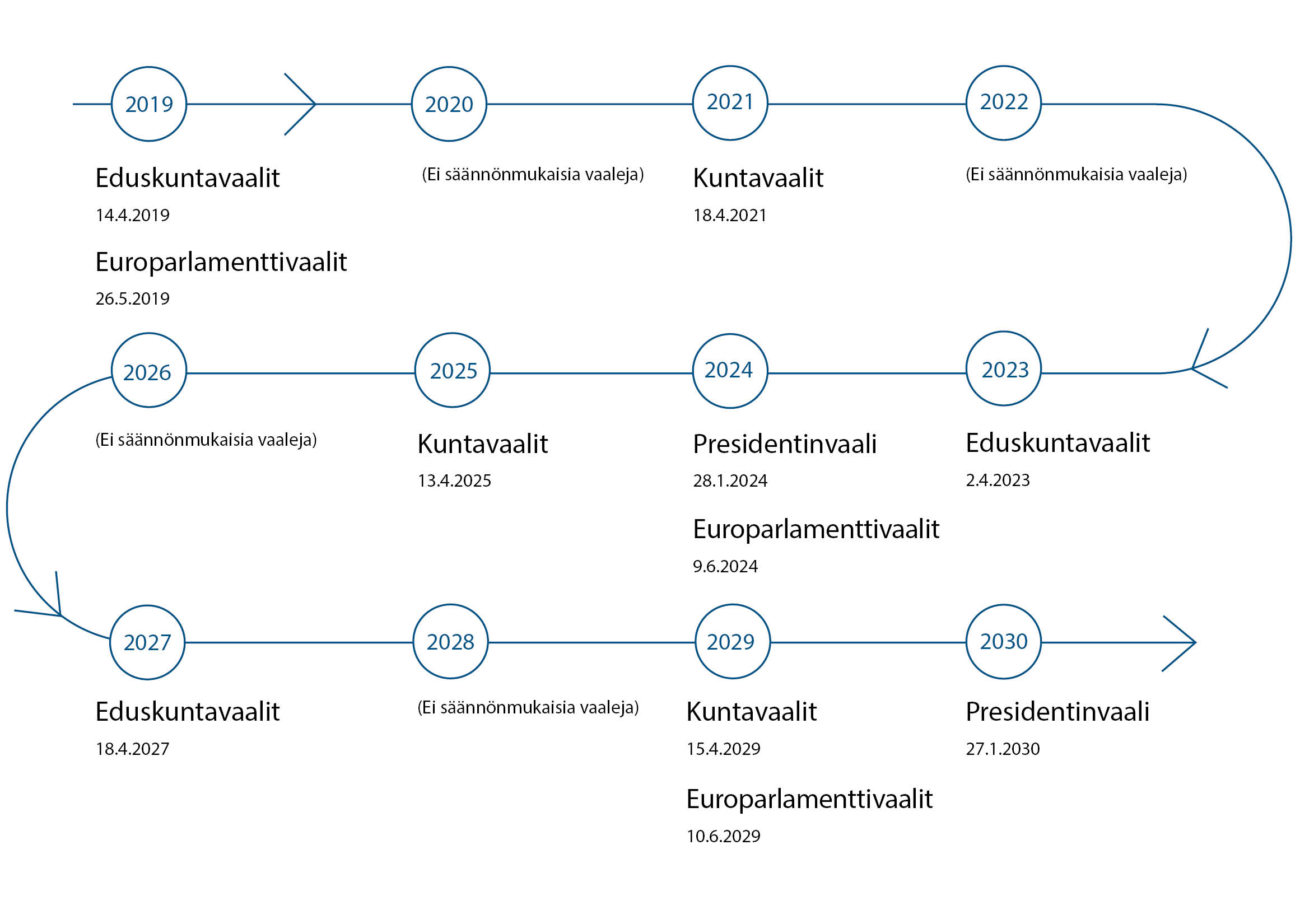 Vuosina 2019-2030 toimitettavat säännönmukaiset vaalit